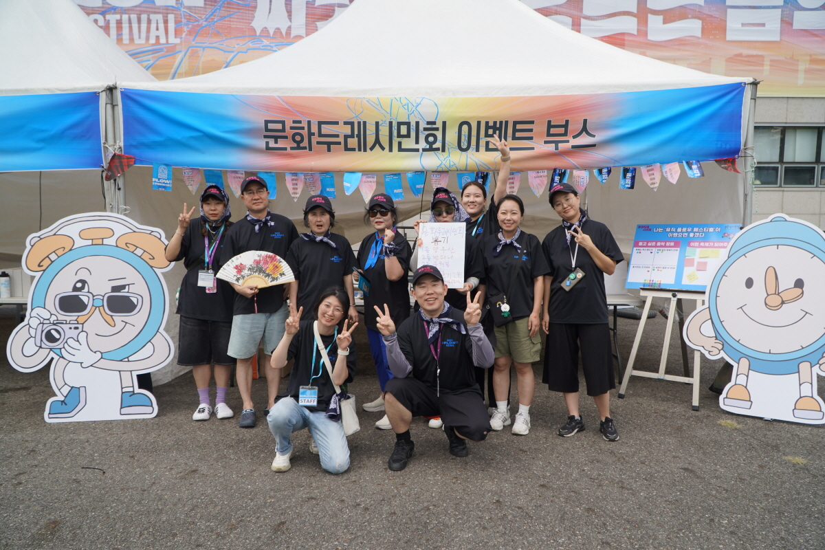 문화두레시민운영회를 하면서 문화도시센터 직원들과 부스 운영을 했던 게 가장 기억에 남아요. 2023년 처음 뮤직 플로우 사운즈 소성주 공장에서 진행할 때 여기 있는 서선미님, 김가람대리님 이렇게 셋이 땡볕에서 고생했던 기억이 납니다. 그러니까 정말 누가 뭐라 그래도 우리만의 만족감으로 2025년까지 열의를 갖고 진행했던 것 같아요. 문화재단이, 문화도시부평이 잘 되기를 바라는 염원 하나로 뭔가 도움이 되려고 애썼던 기억이 가장 많아요.
